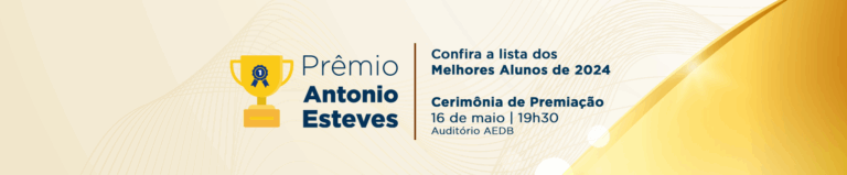 No dia 16/05 às 19h30, o Auditório da AEDB receberá mais uma edição do Prêmio Professor Antonio Esteves, evento dedicado a reconhecer publicamente os alunos que se destacaram academicamente ao longo do ano letivo de 2024.