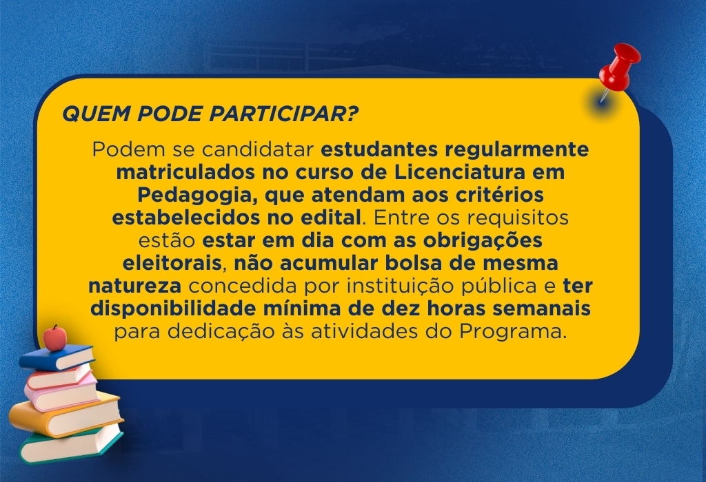 Também é exigido cadastro atualizado na Plataforma Capes de Educação Básica e conta corrente ativa em nome do bolsista para recebimento da bolsa.